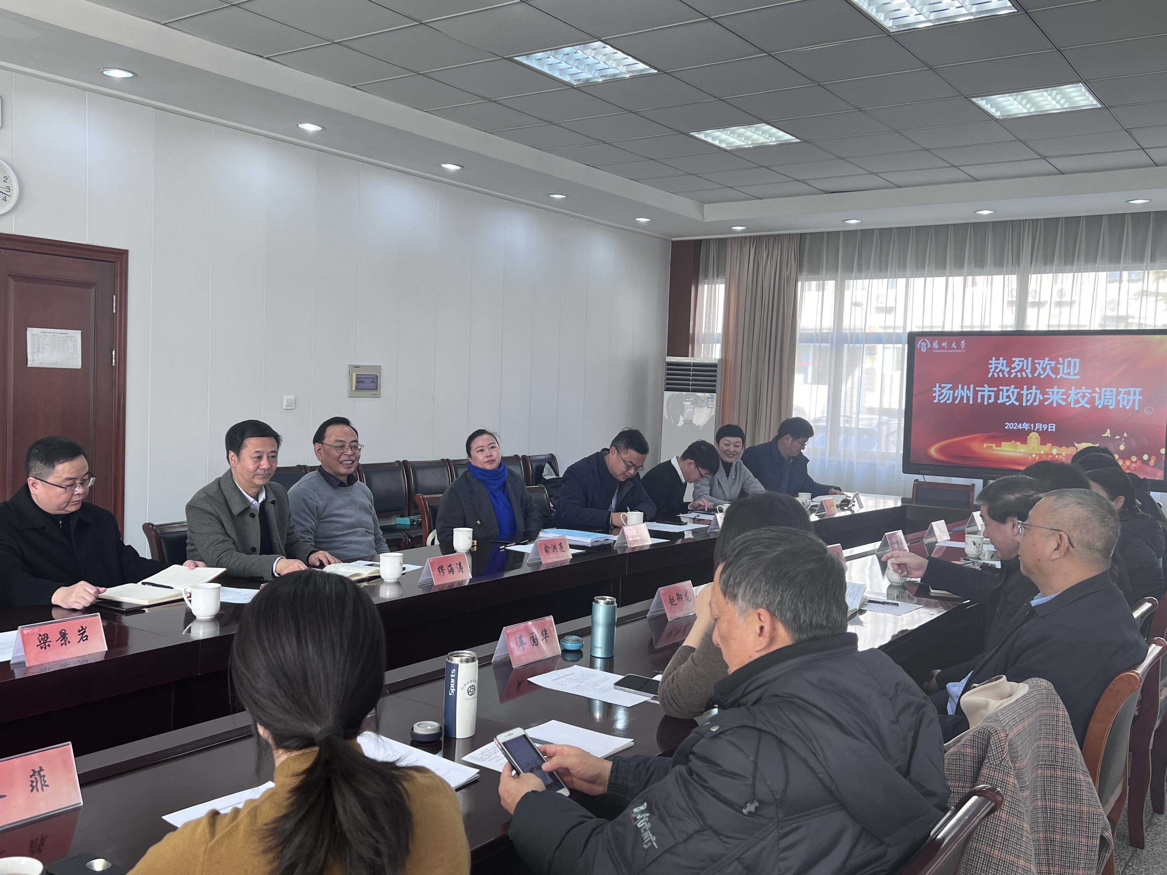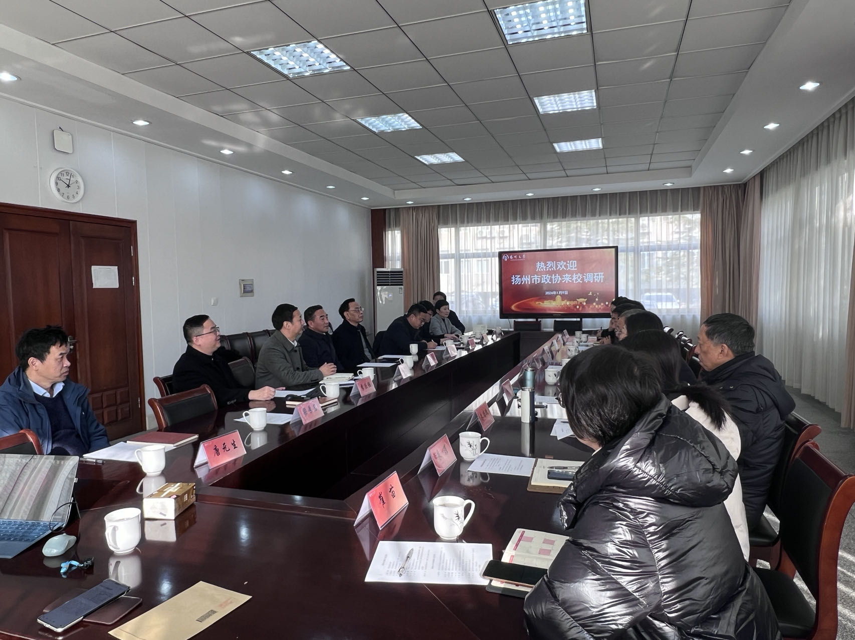 1月9日,市政协副主席陈曦一行来我校调研,校党委副书记周如军出席活动。市外办、市侨联、市公共外交协会、广陵区欧美同学会等单位代表陪同调研。市欧美同学会会长俞洪亮教授主持调研座谈会。