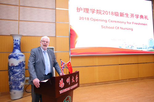 9月3日上午,学校举行与英国赫尔大学护理合作办学项目开学典礼。英国赫尔大学副校长Glenn Burgess教授、健康科学学院副院长Amanda Lee博士及护理合作办学项目负责人Jennifer Loke博士一行来校,出席开学典礼。副校长陈国宏出席活动并讲话。